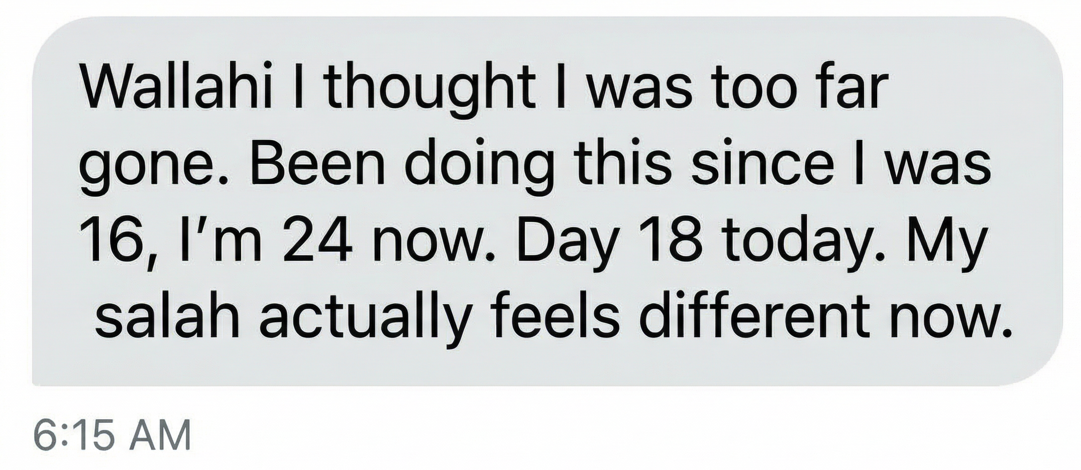 My salah finally means something again. For years I'd relapse then rush through Fajr feeling disgusting. Module 3 taught me that each prayer is a reset button - it wipes away what came before. That changed everything. I'm at 41 days now and I actually look forward to prayer instead of dreading it.
