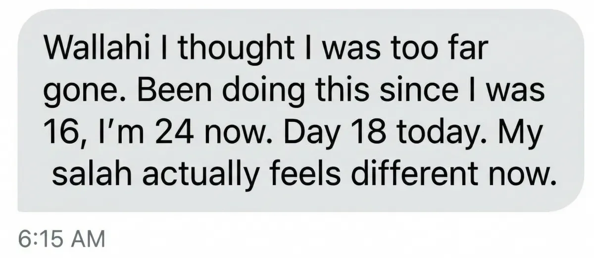 Most brothers experience their first clean week within 7-10 days of starting. Many report noticeable changes in salah quality within 3-5 days.